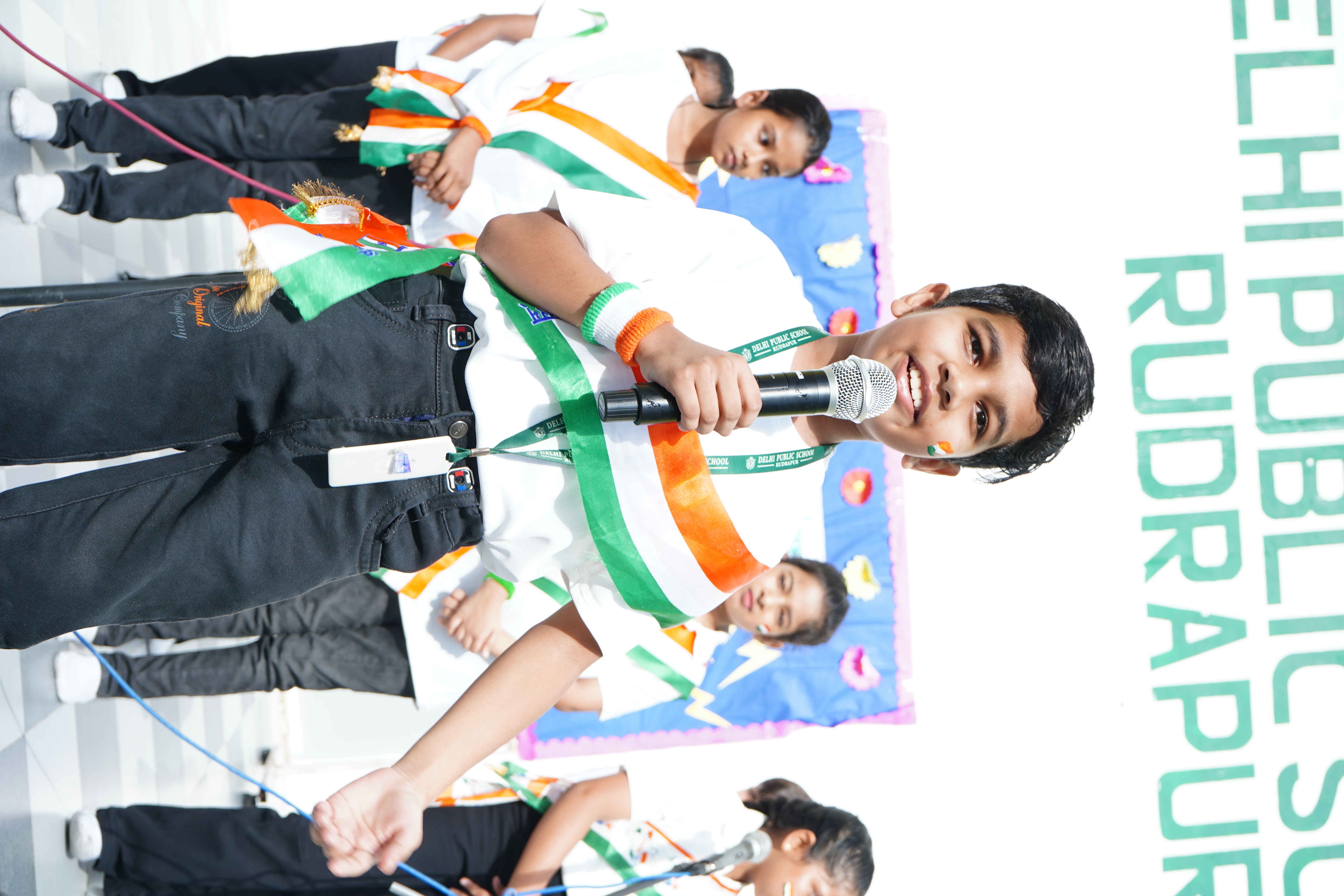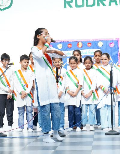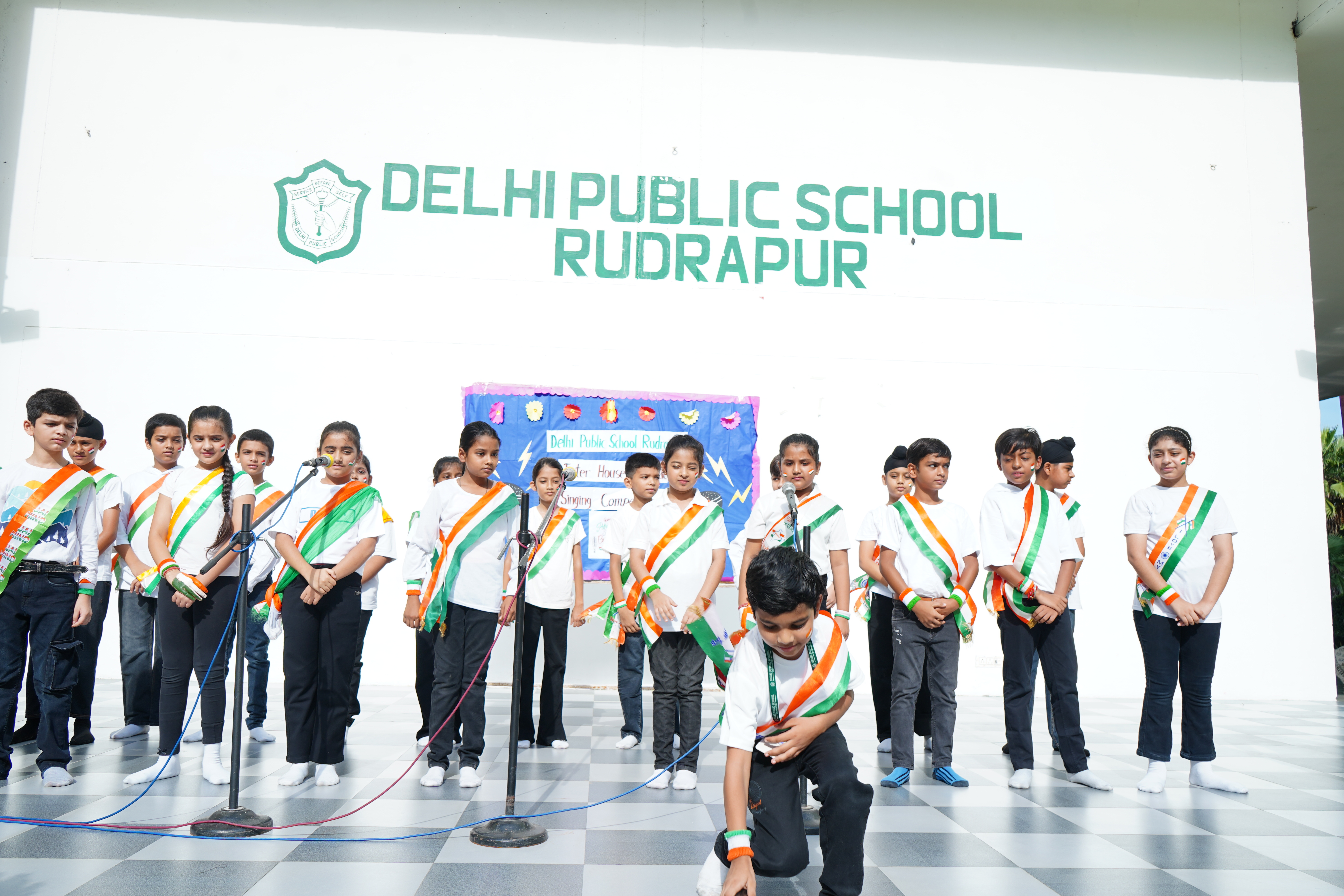 A Hindi Patriotic Song Competition was organized in the Primary Section, where students from all houses participated with great enthusiasm. They sang melodious patriotic songs that filled the atmosphere with pride and evoked strong emotions of patriotism among everyone present.