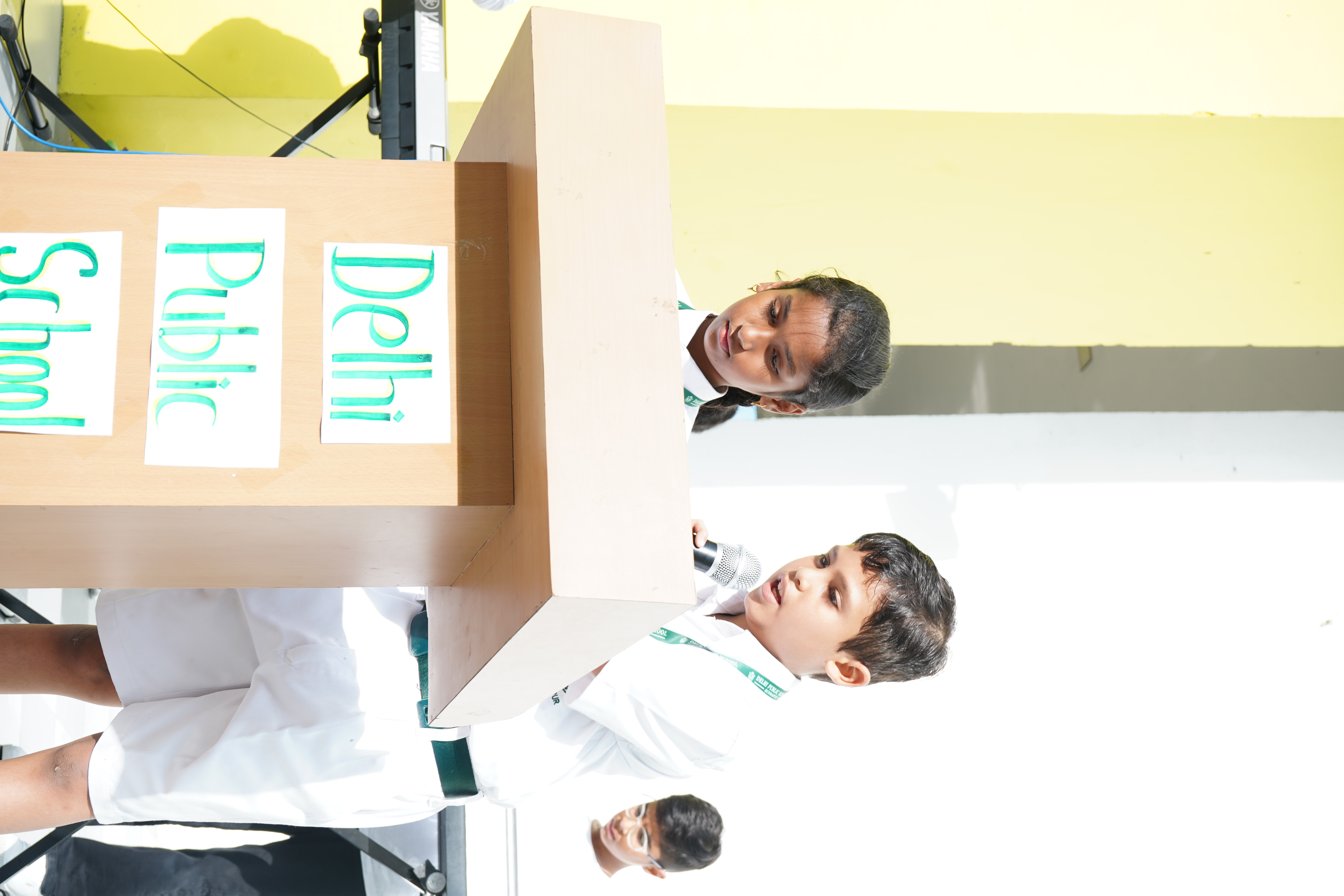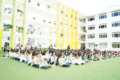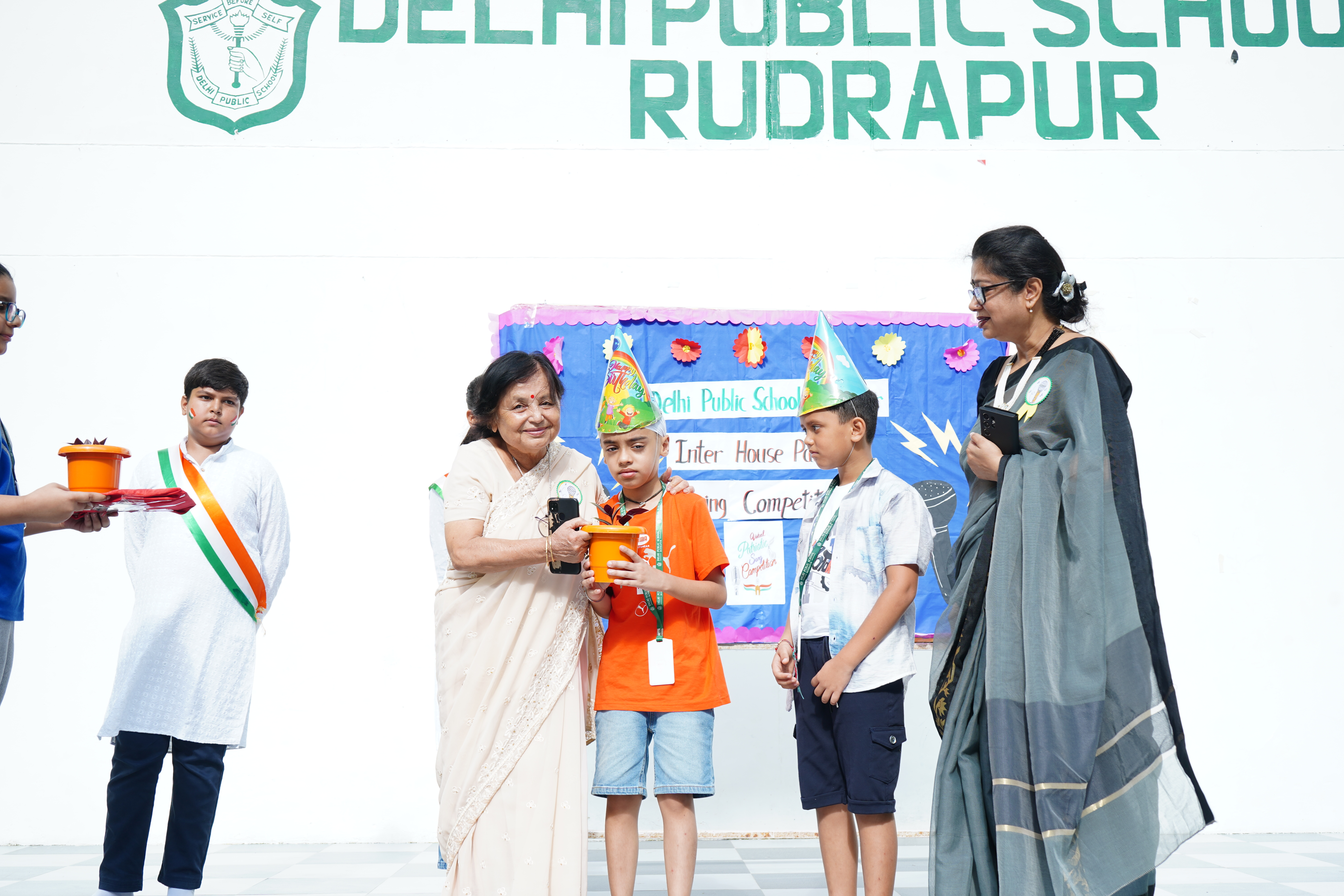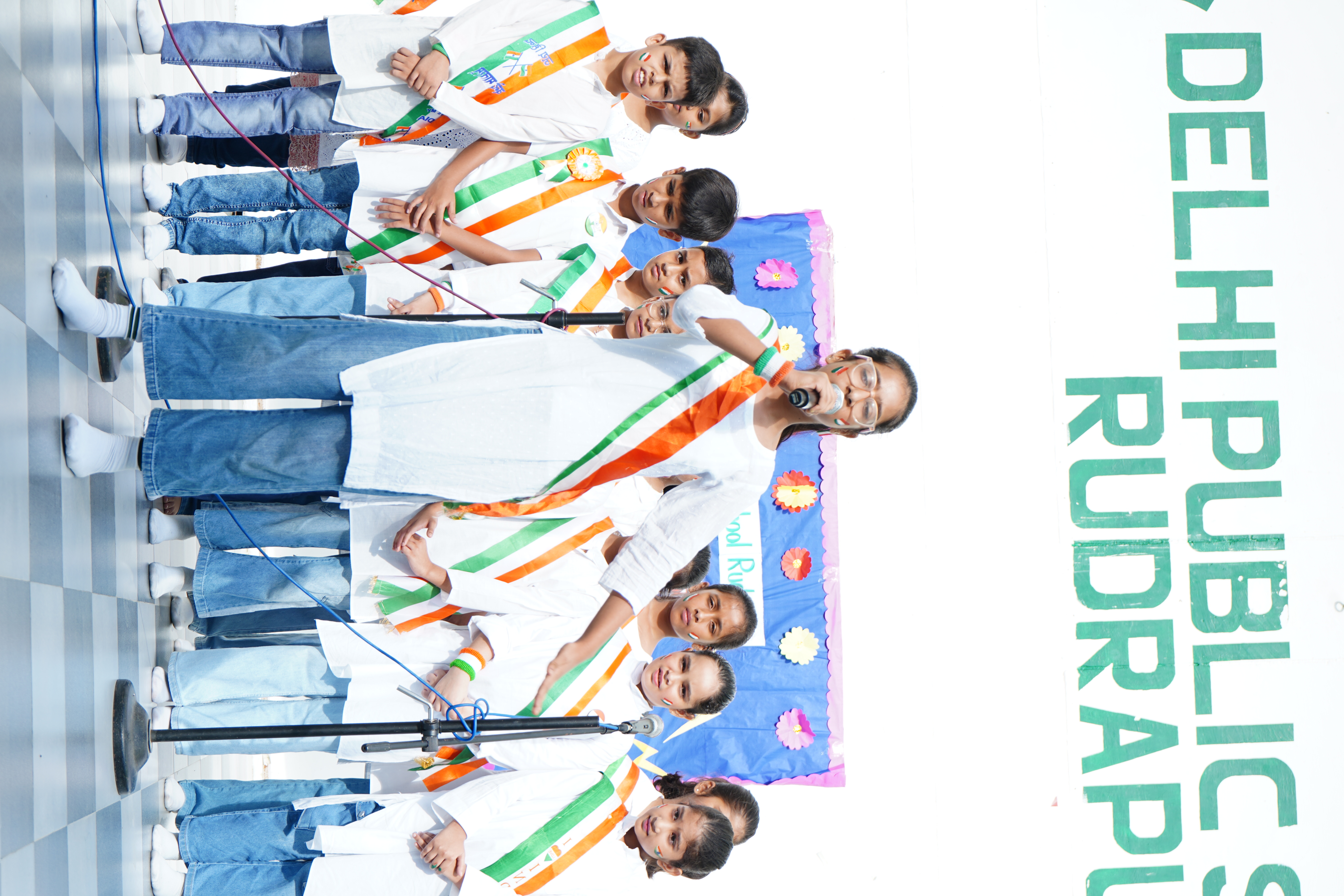A Hindi Patriotic Song Competition was organized in the Primary Section, where students from all houses participated with great enthusiasm. They sang melodious patriotic songs that filled the atmosphere with pride and evoked strong emotions of patriotism among everyone present.