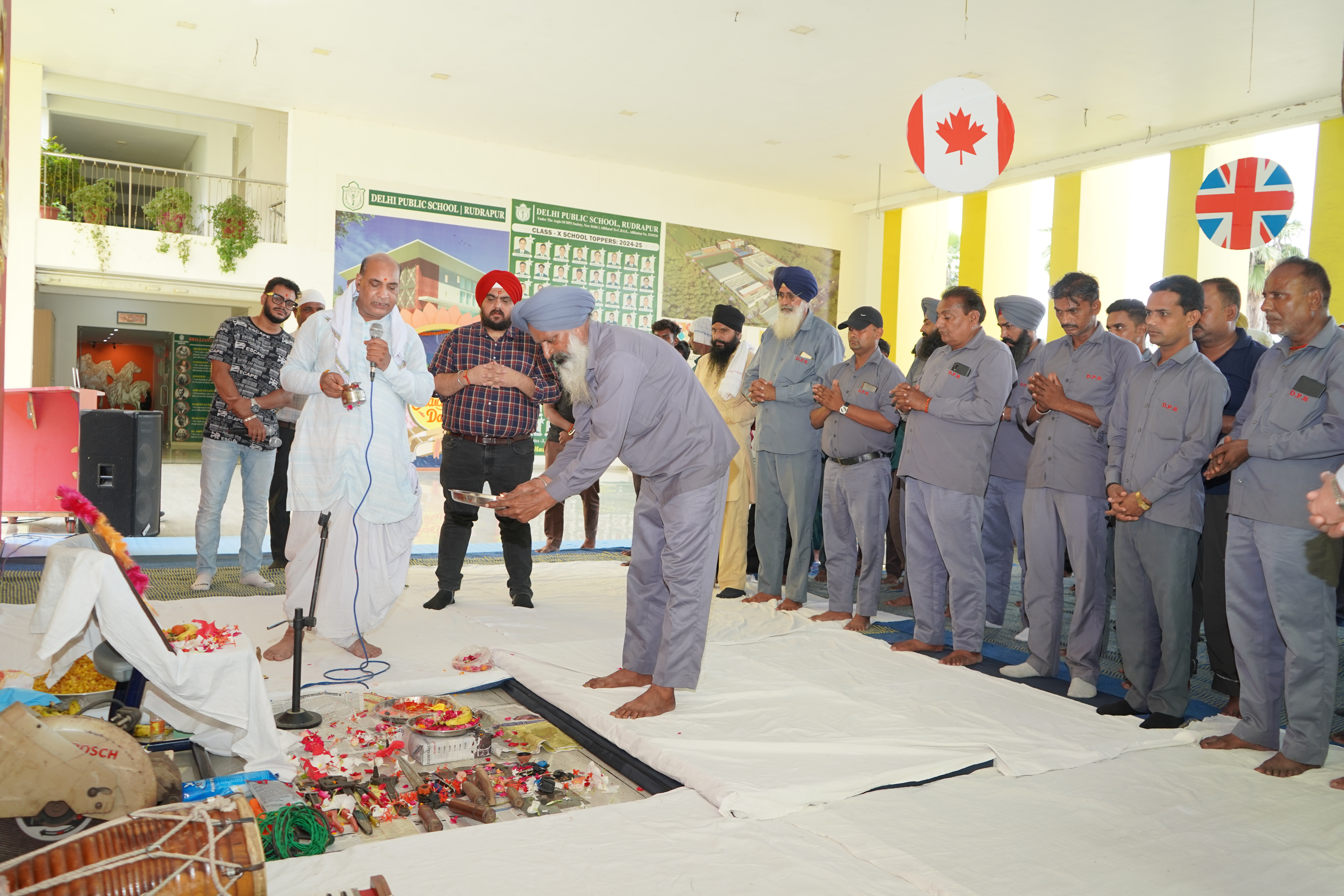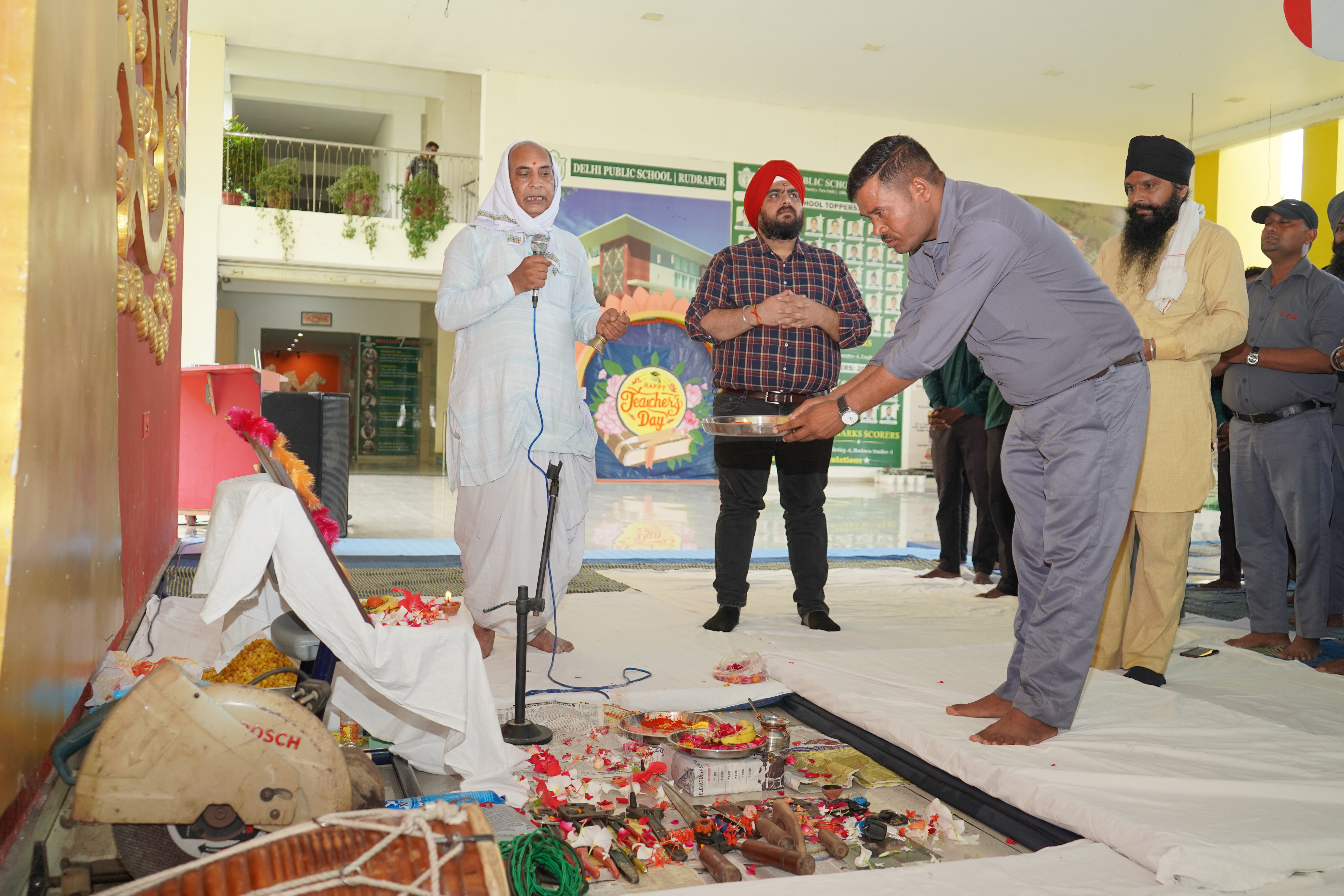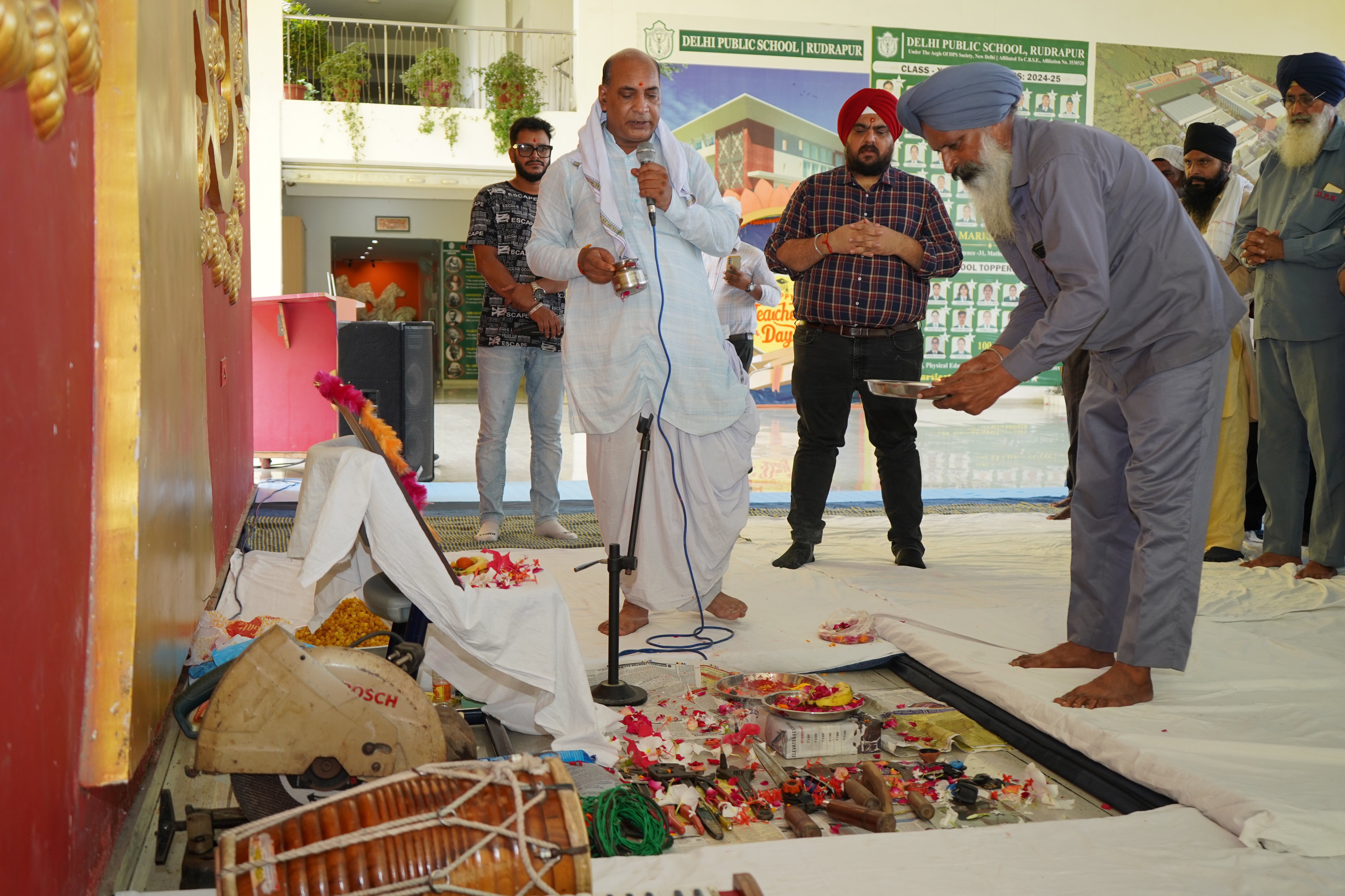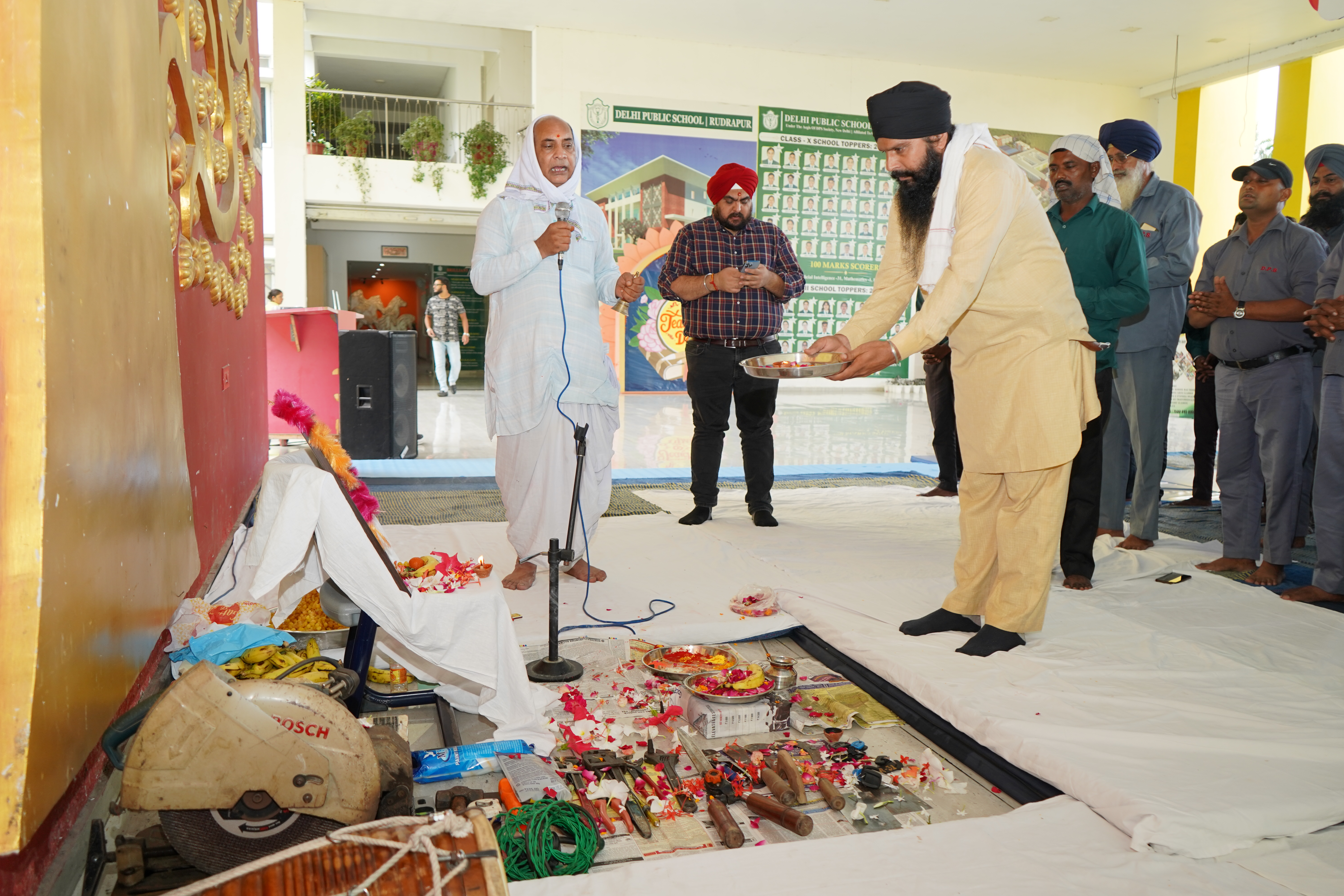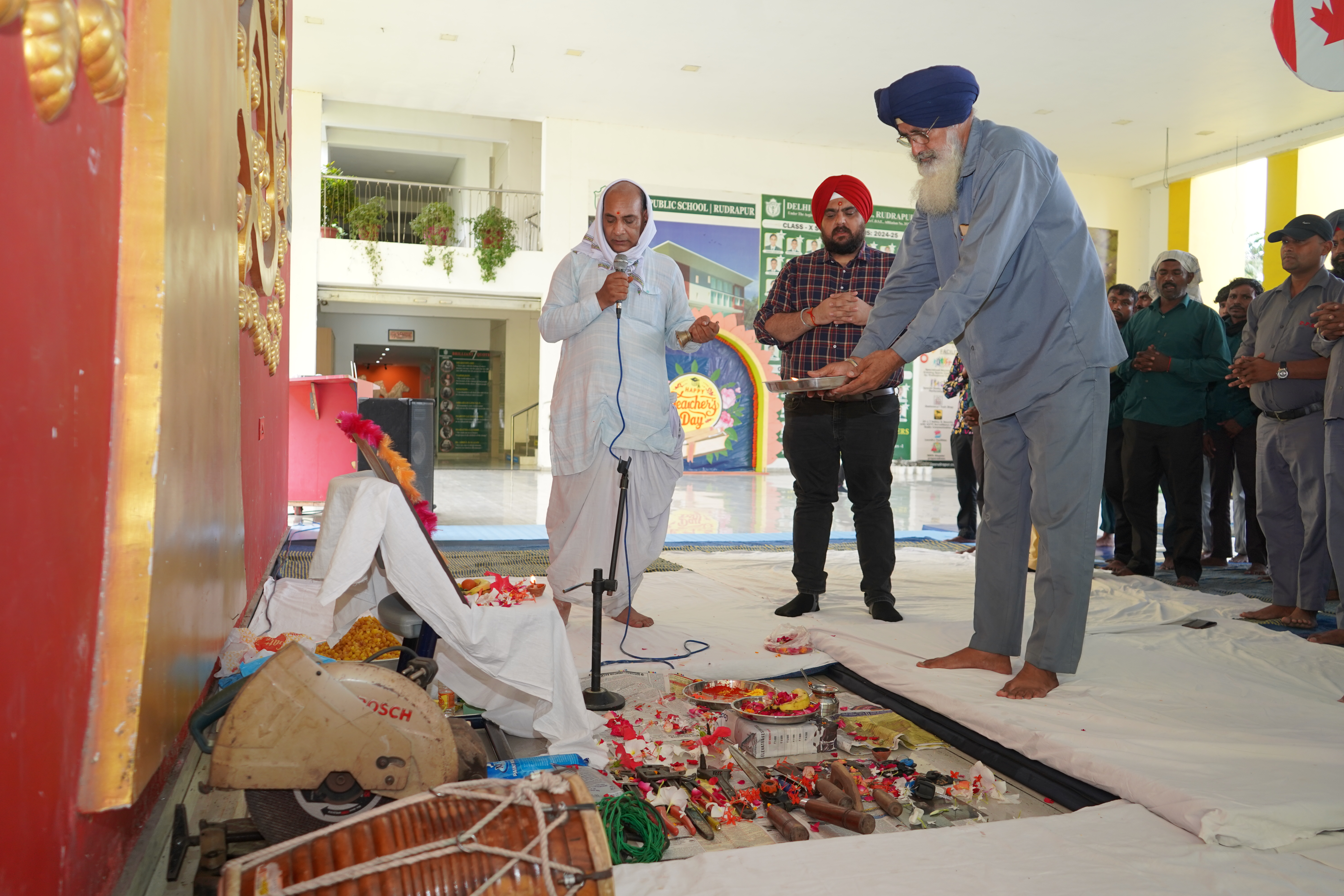 Delhi Public School, Rudrapur reverberated with devotion and reverence as the school family came together to celebrate Vishwakarma Puja. Lord Vishwakarma, revered as the divine architect and symbol of creation, innovation, and craftsmanship, was worshipped with traditional rituals, havan, and bhajan kirtan.
