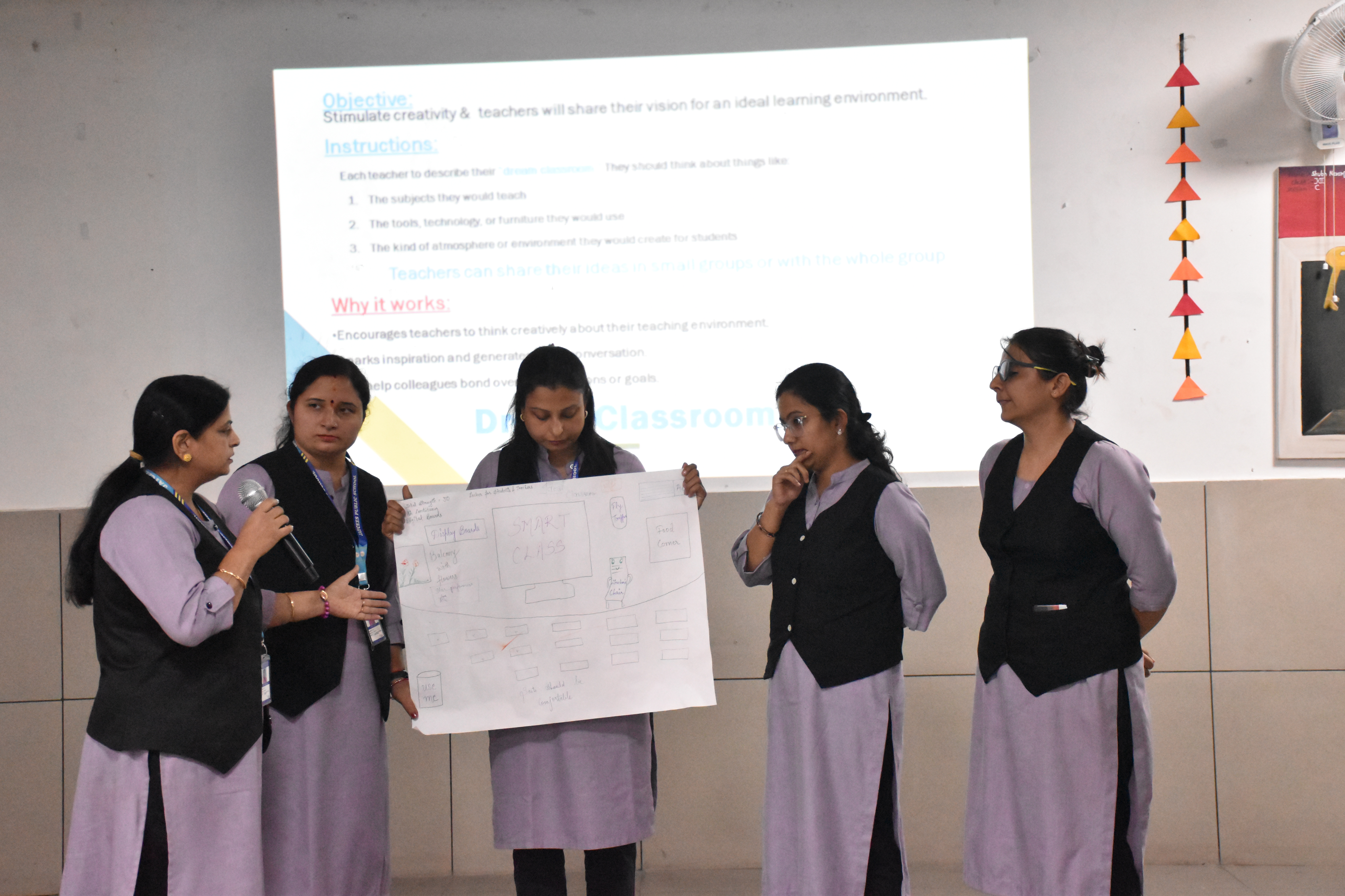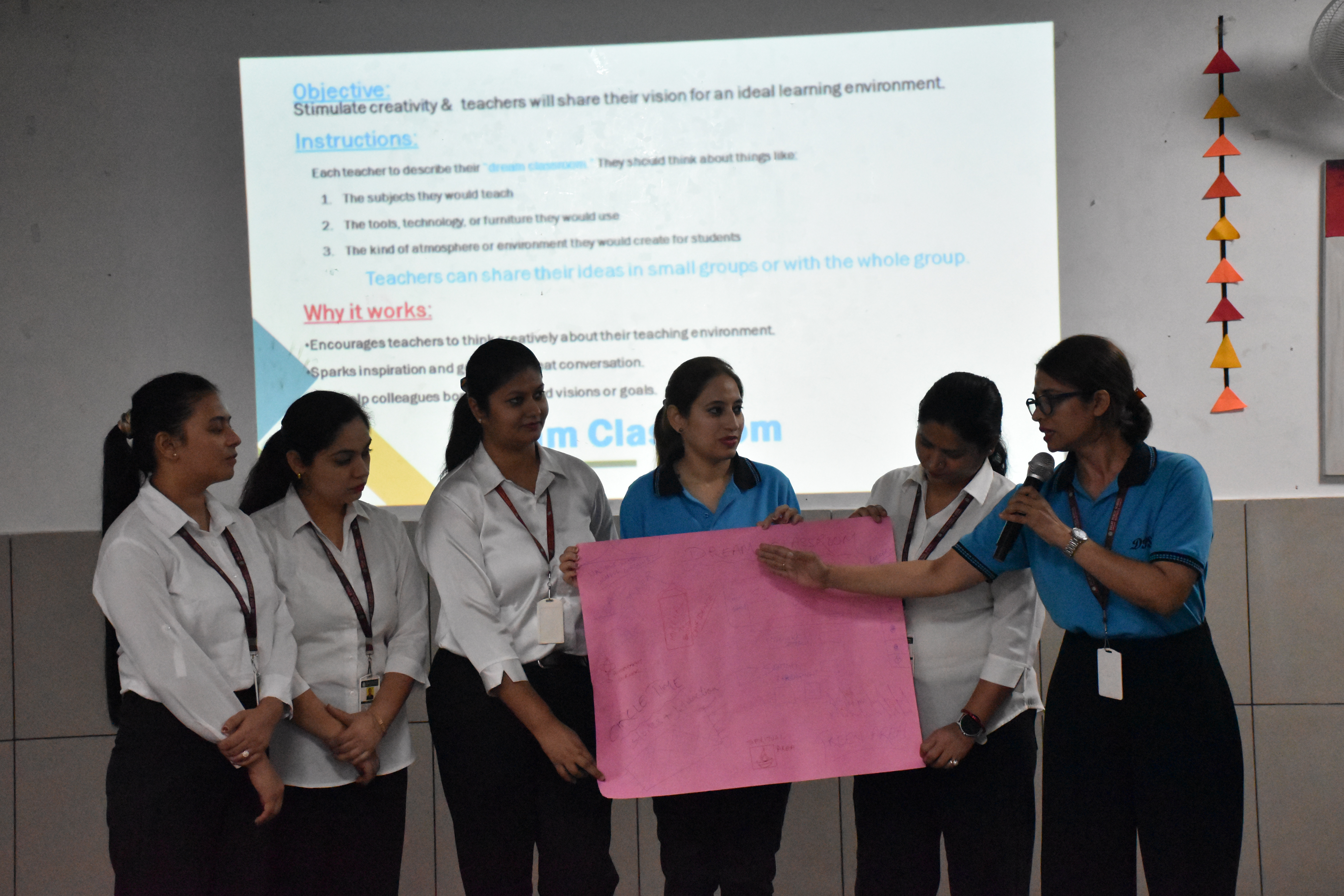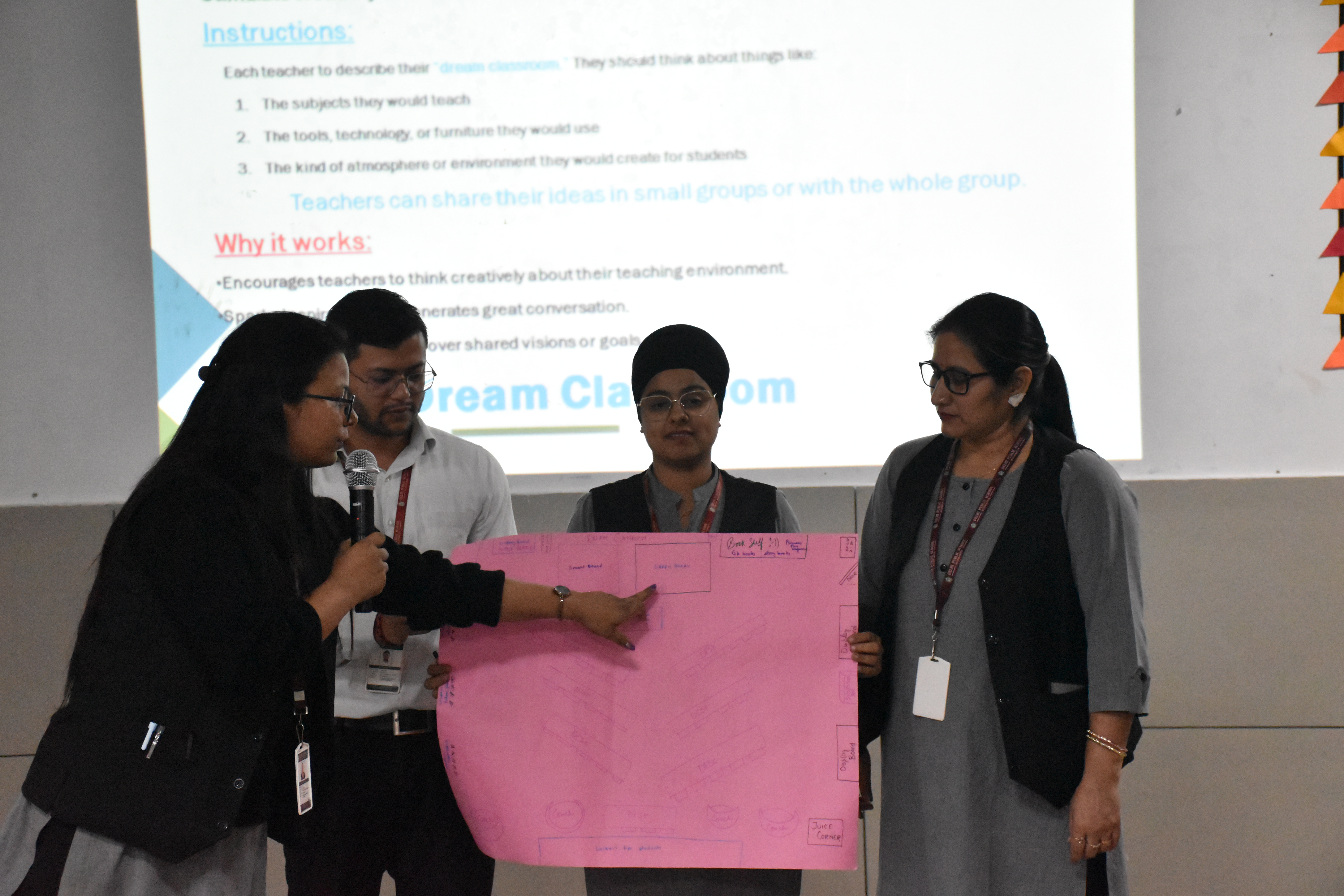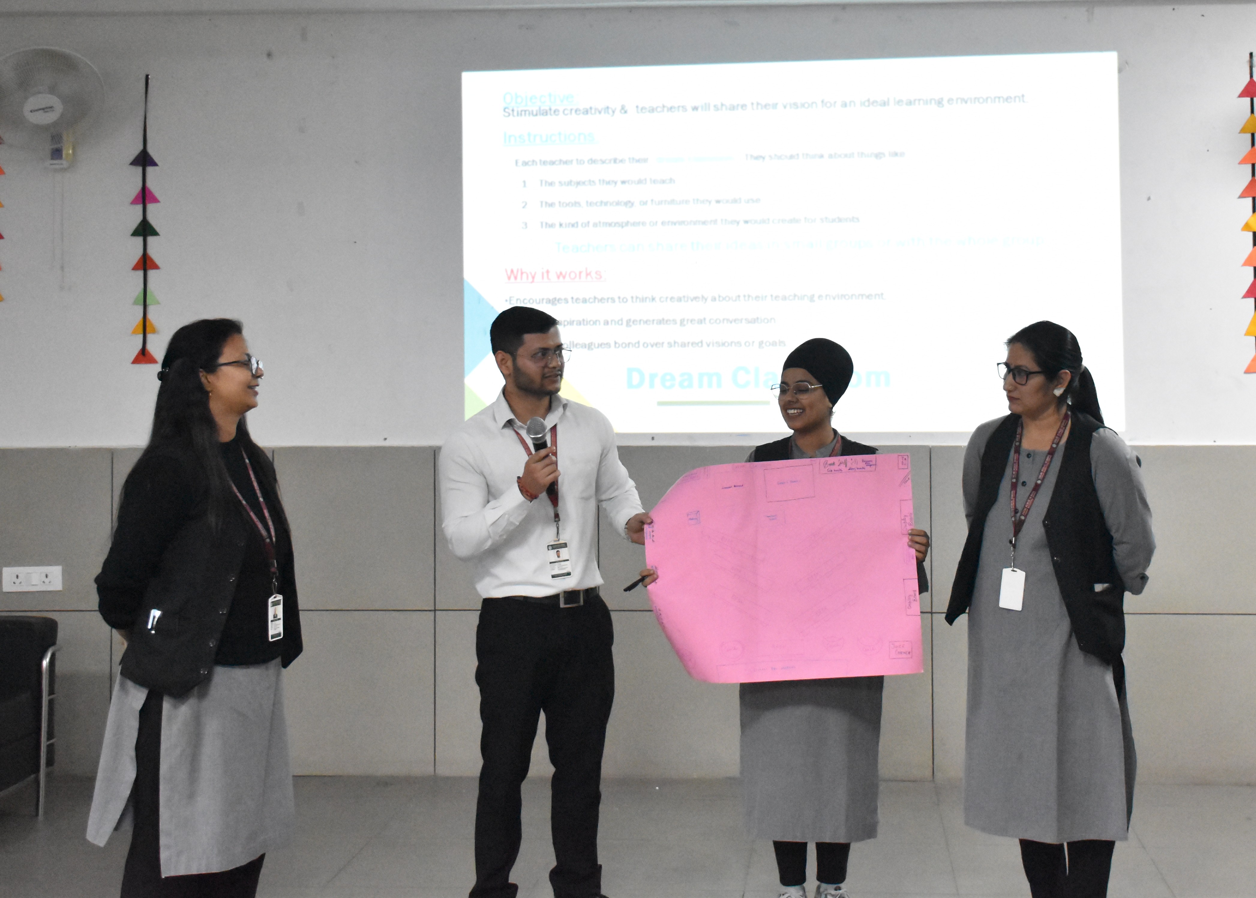 Teachers actively took part in hands-on activities such as “Making Math Meaningful” — designing real-life math problems — and “Dream Classroom” — sharing their vision for an ideal, technology-enabled learning environment. These engaging activities encouraged collaboration, creativity, and reflection on modern instructional practices that enhance student engagement and critical thinking.