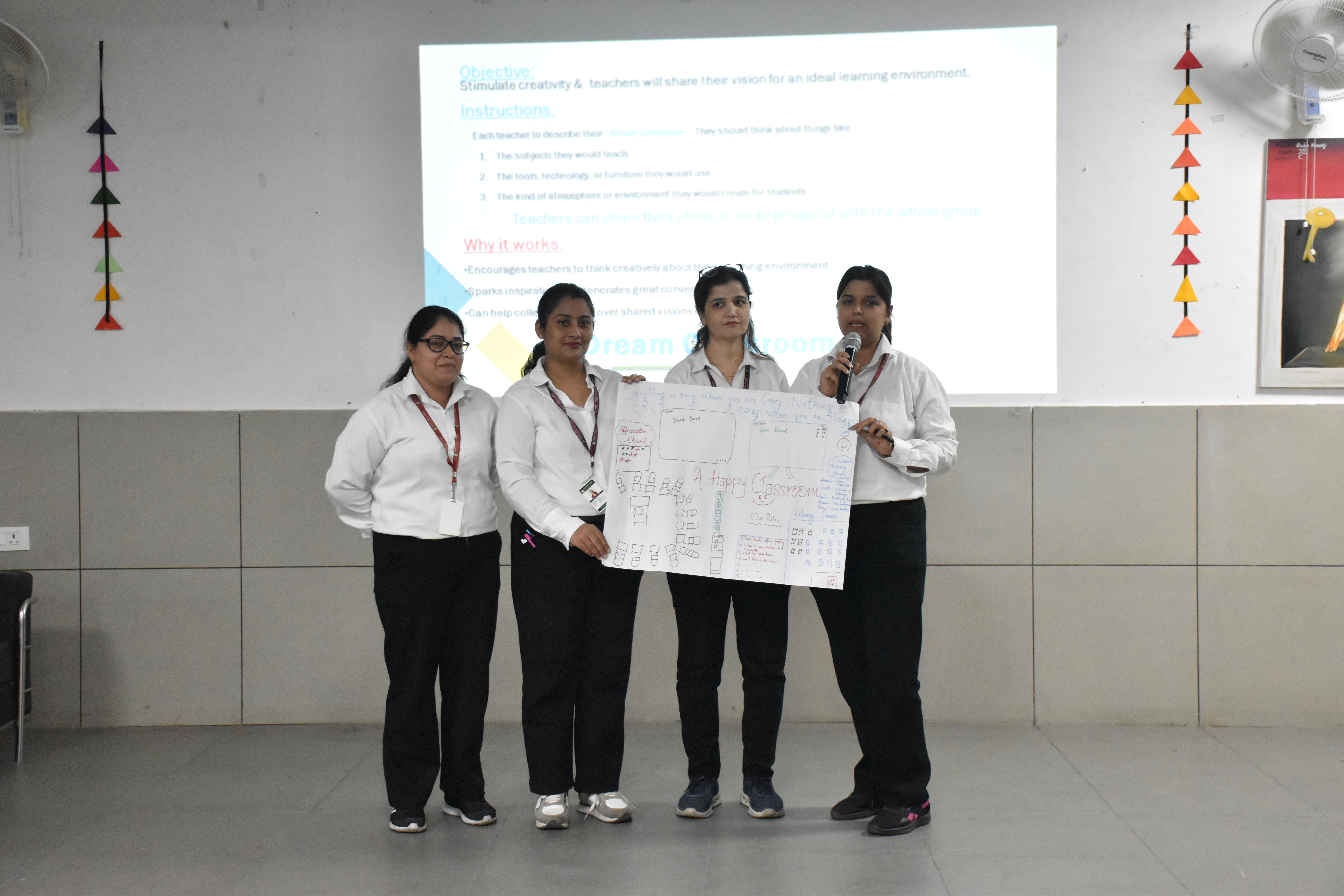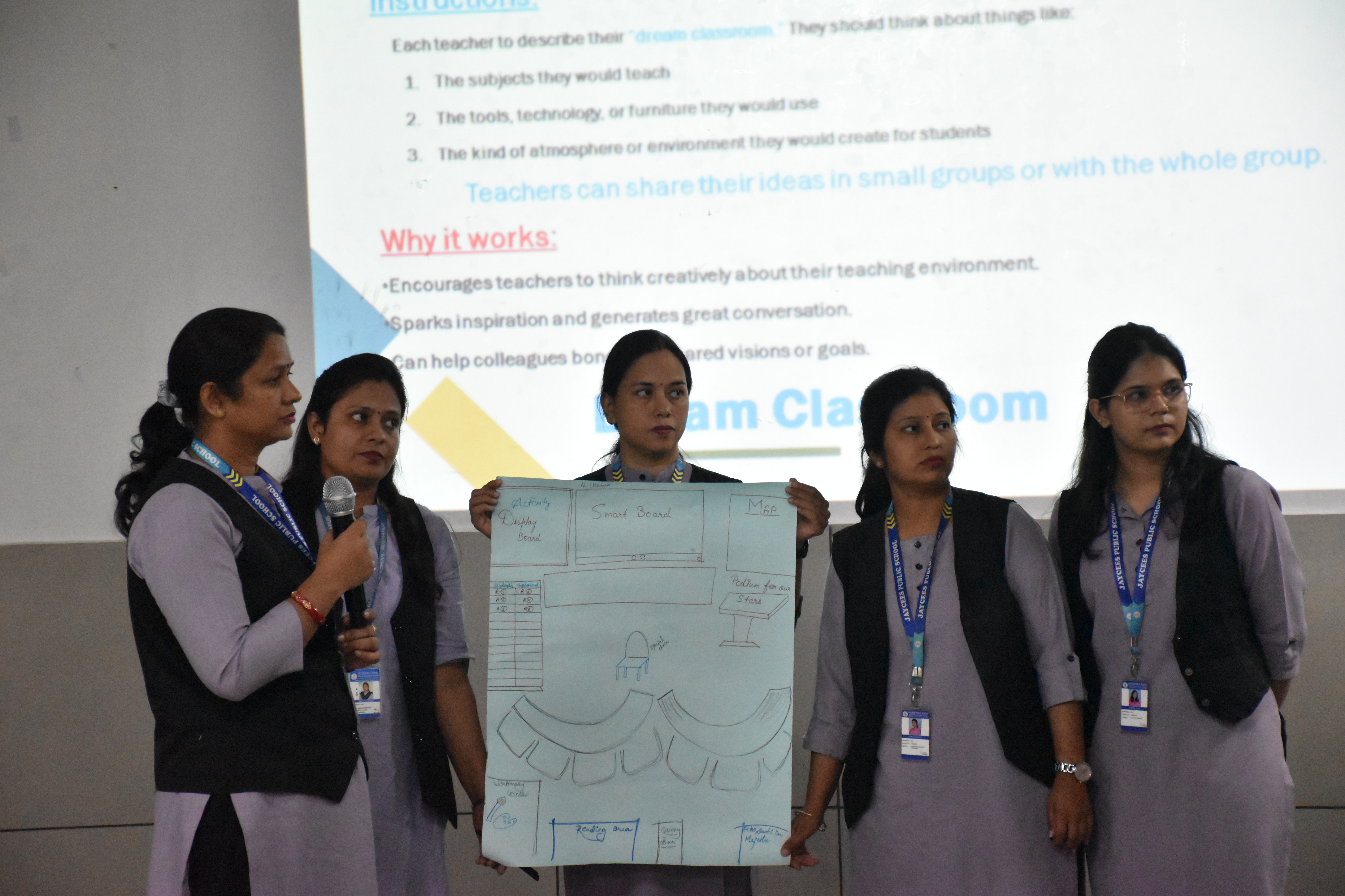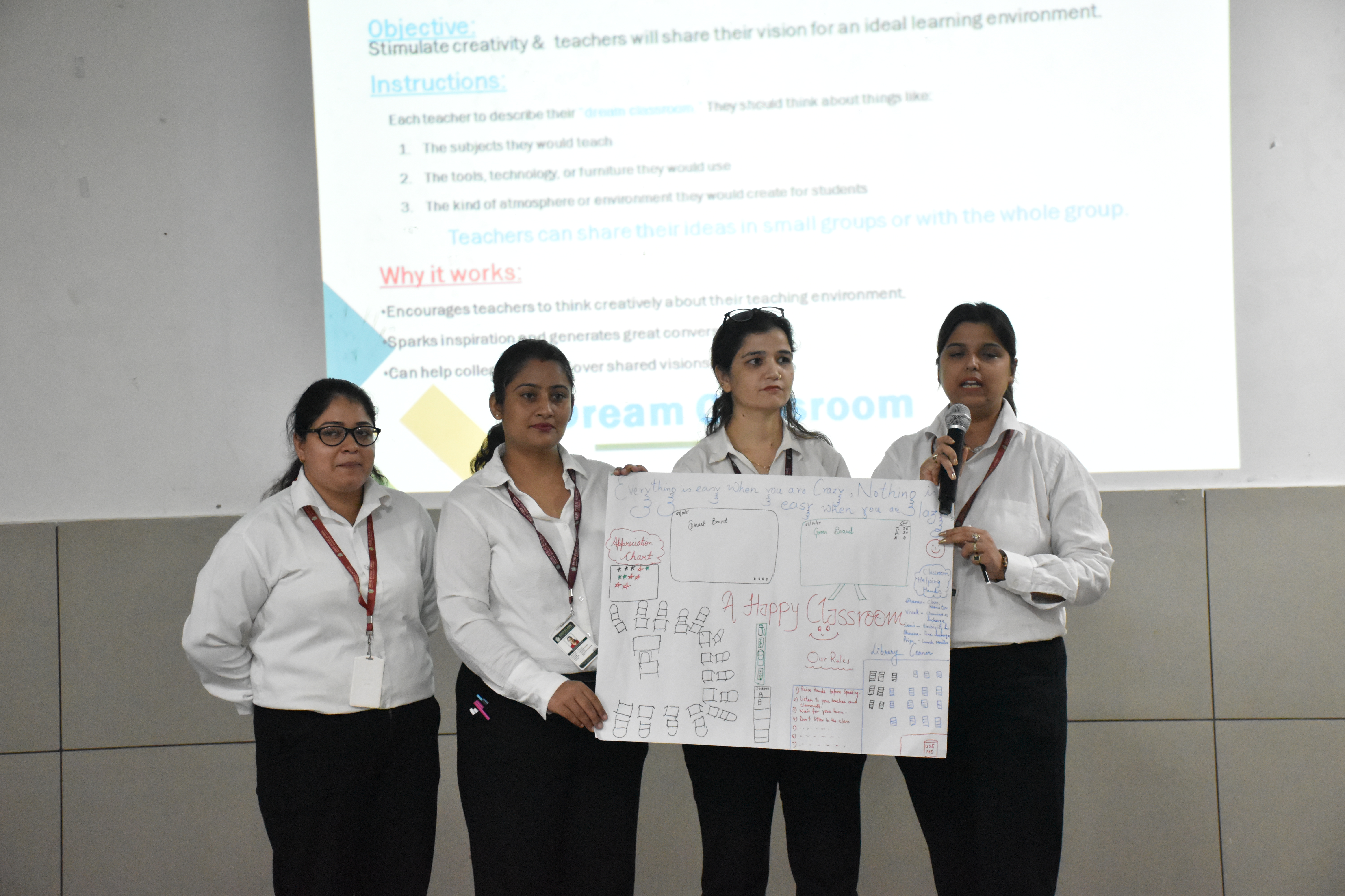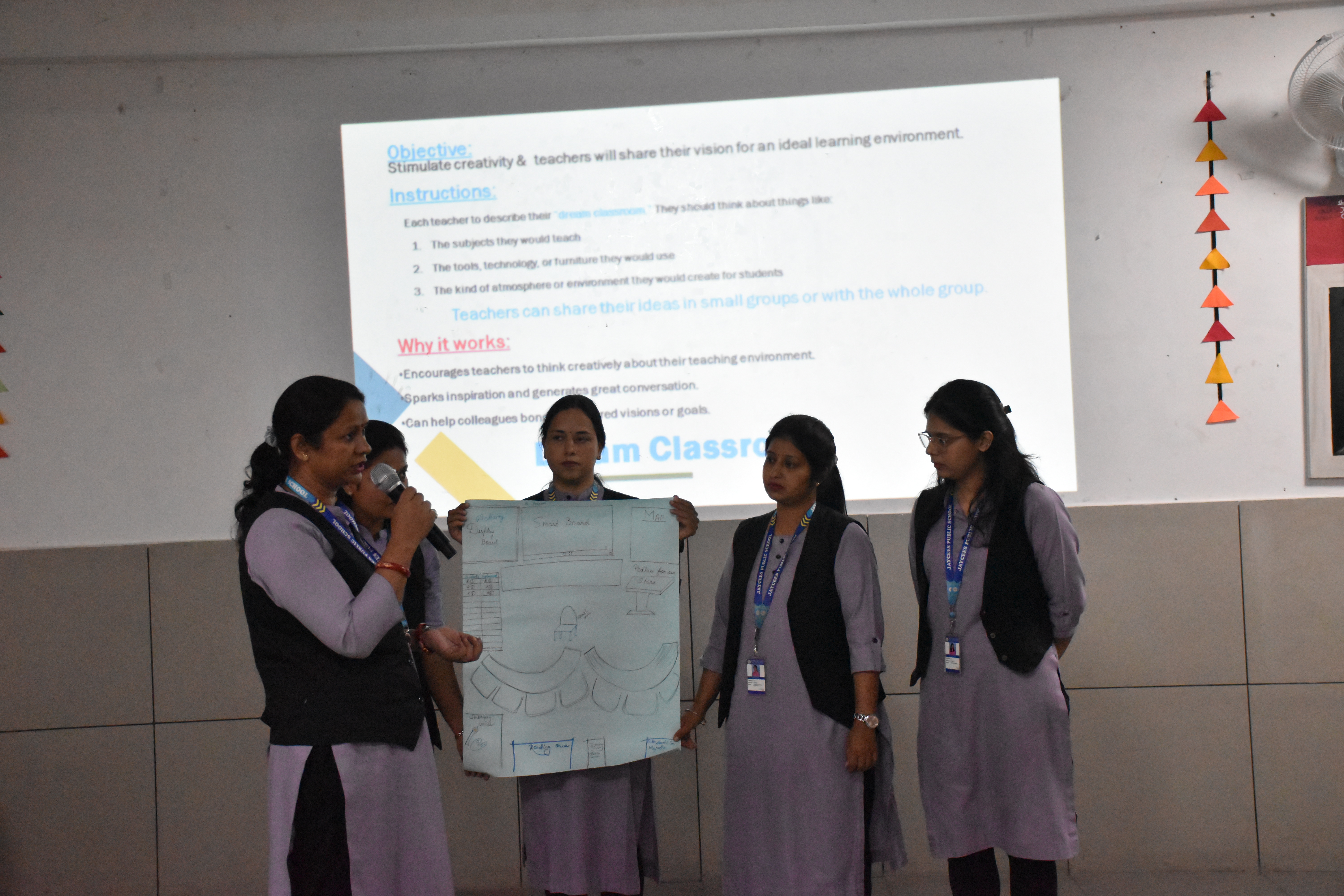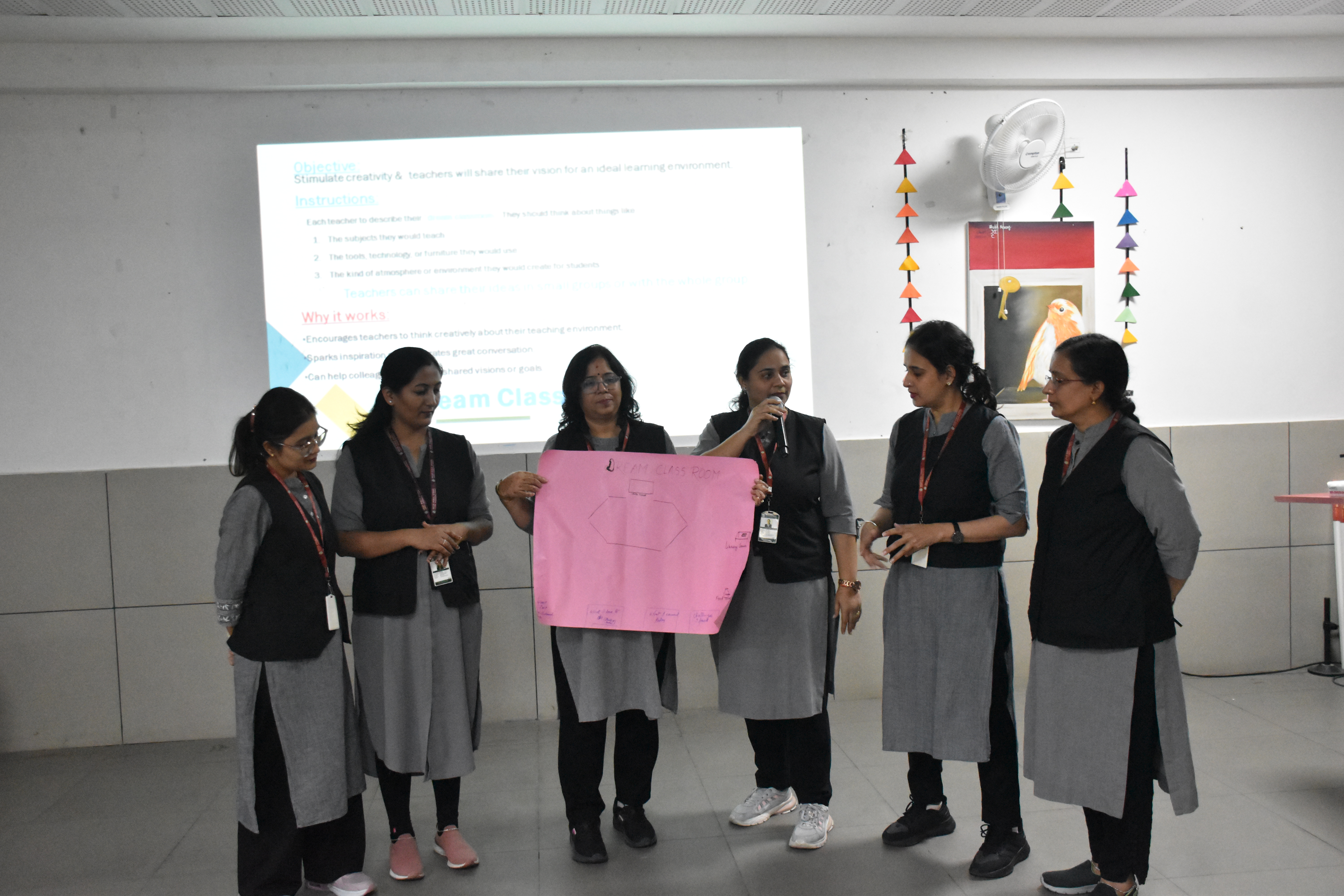 Teachers actively took part in hands-on activities such as “Making Math Meaningful” — designing real-life math problems — and “Dream Classroom” — sharing their vision for an ideal, technology-enabled learning environment. These engaging activities encouraged collaboration, creativity, and reflection on modern instructional practices that enhance student engagement and critical thinking.