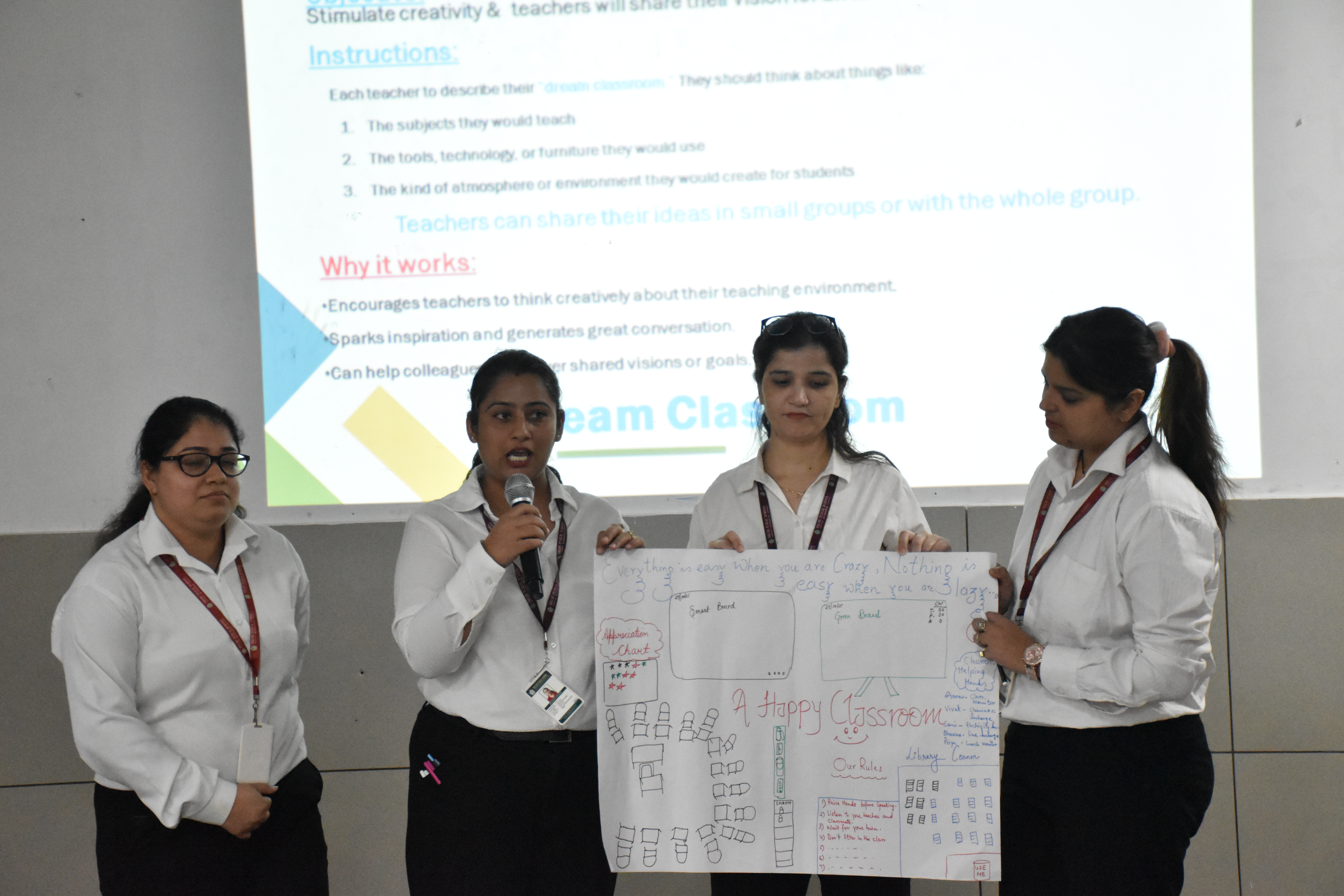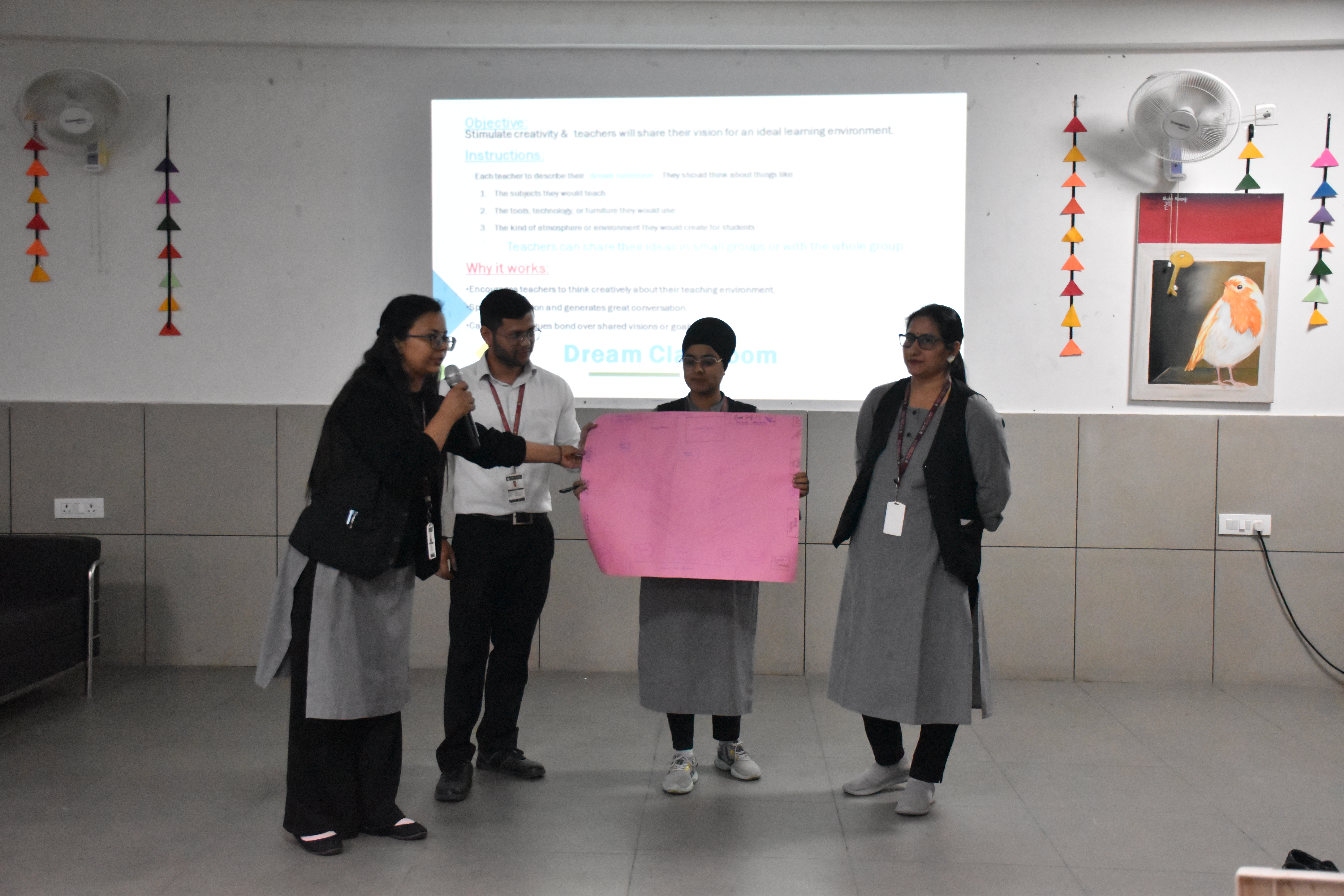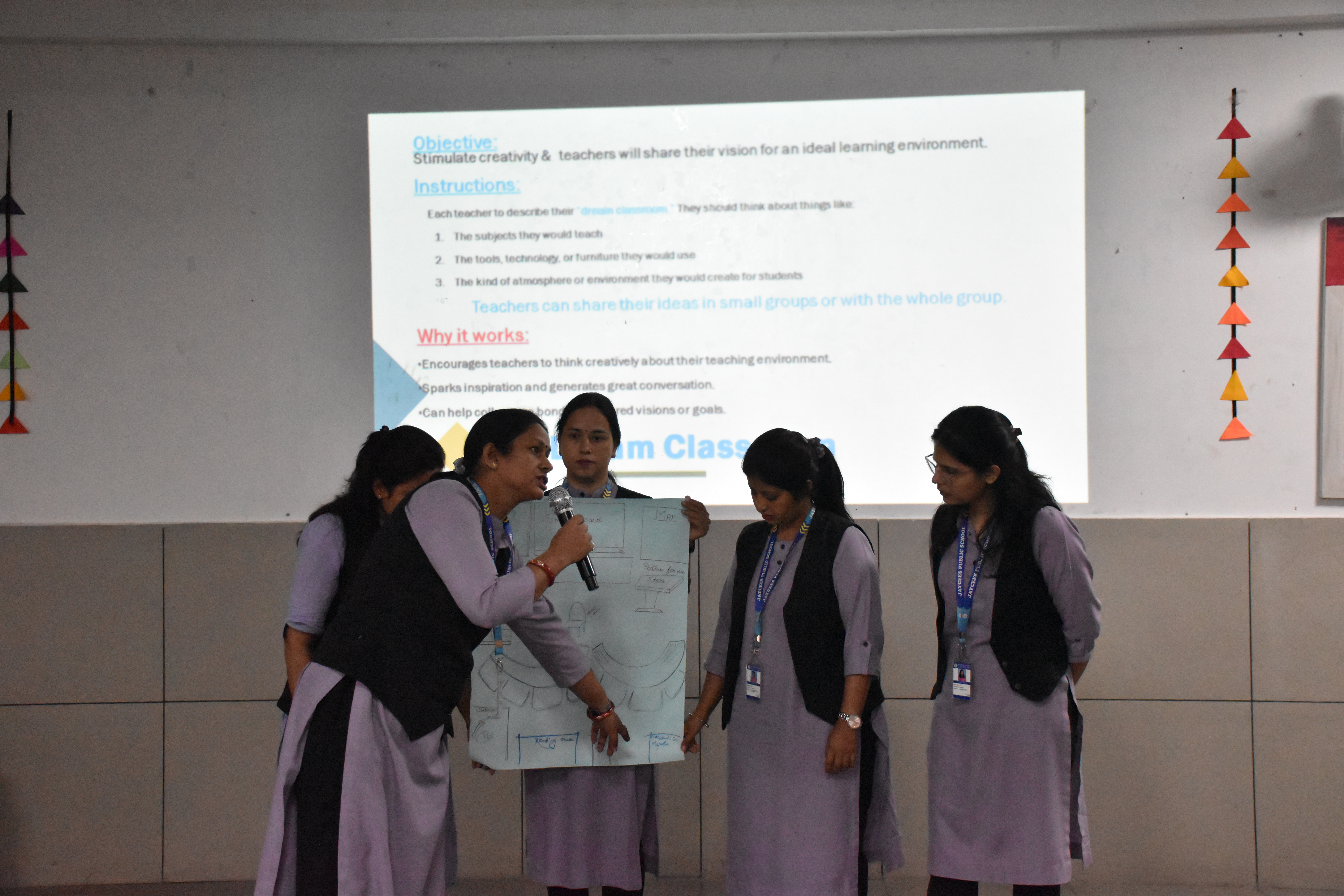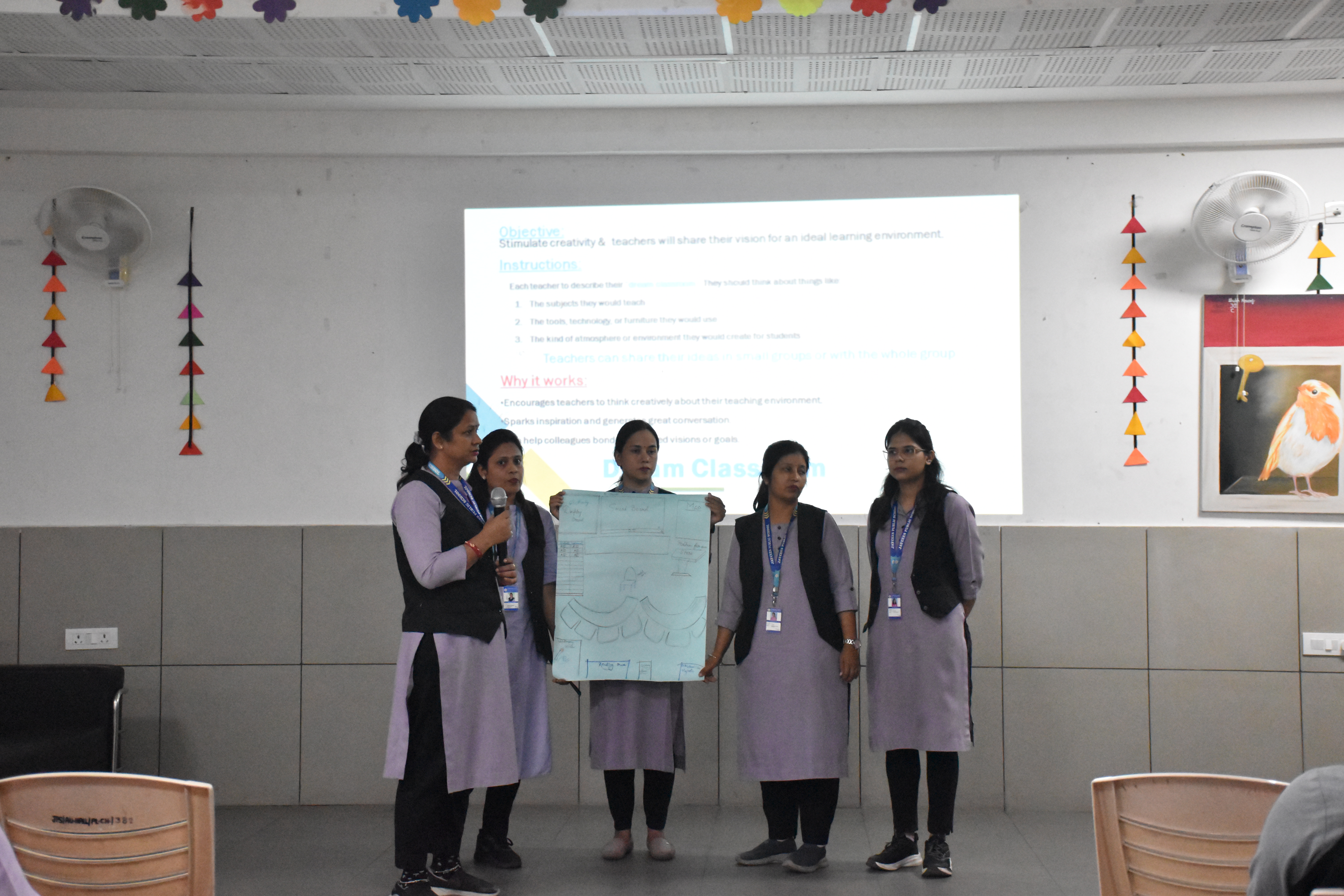 Teachers actively took part in hands-on activities such as “Making Math Meaningful” — designing real-life math problems — and “Dream Classroom” — sharing their vision for an ideal, technology-enabled learning environment. These engaging activities encouraged collaboration, creativity, and reflection on modern instructional practices that enhance student engagement and critical thinking.
