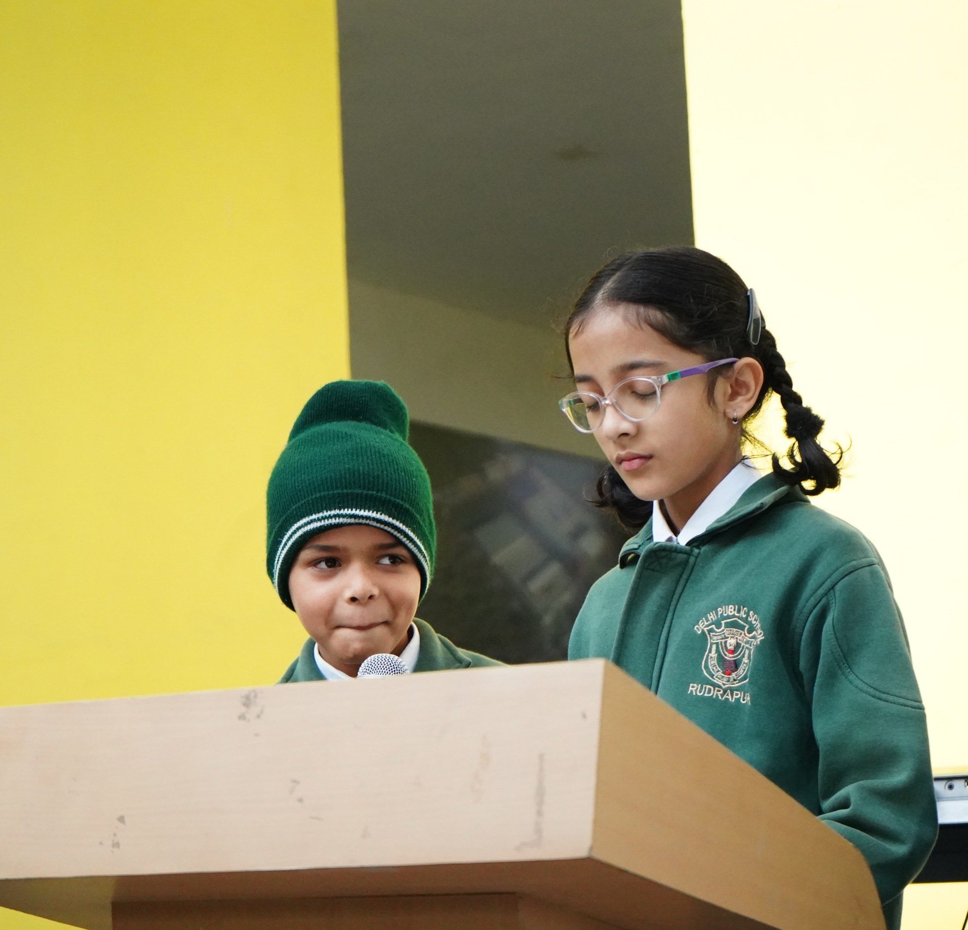 Delhi Public School Rudrapur organized a Student Felicitation Assembly to recognize and celebrate the dedication, effort, and achievements of students from Grades III to V who have shown remarkable progress in various aspects of school life.