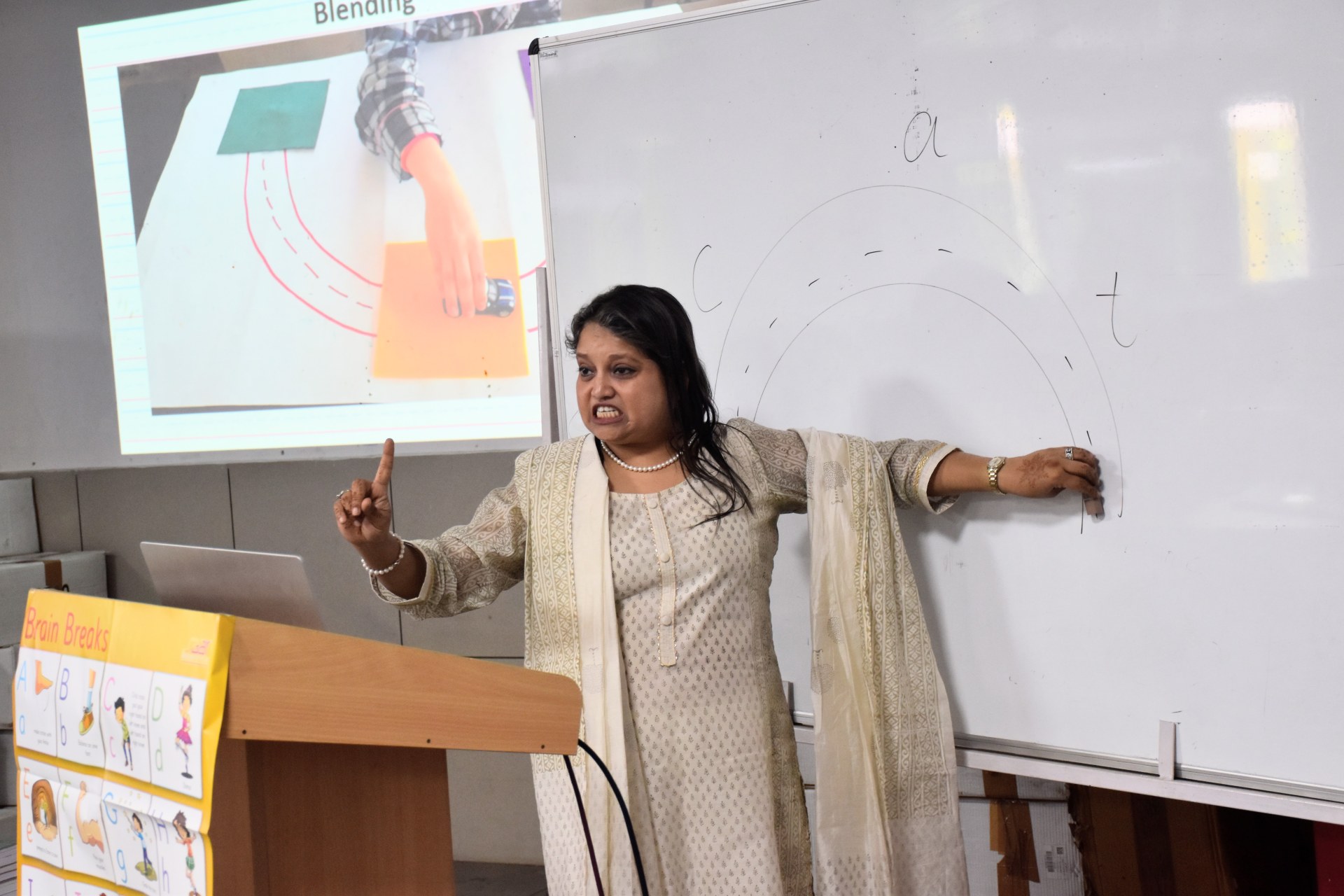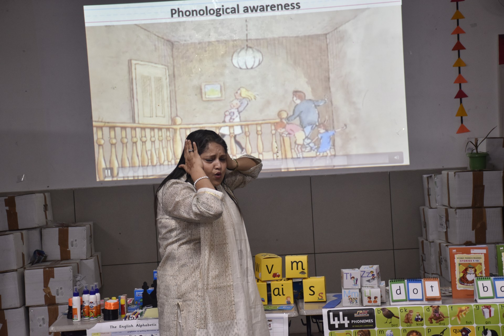 The workshop was conducted by renowned phonics trainer Ms. Priyali Goel, an accredited Jolly Phonics and Jolly Grammar Trainer with over 20 years of experience in inclusive education and curriculum design. Her engaging and practical approach made the session interactive, insightful, and highly beneficial for educators.
