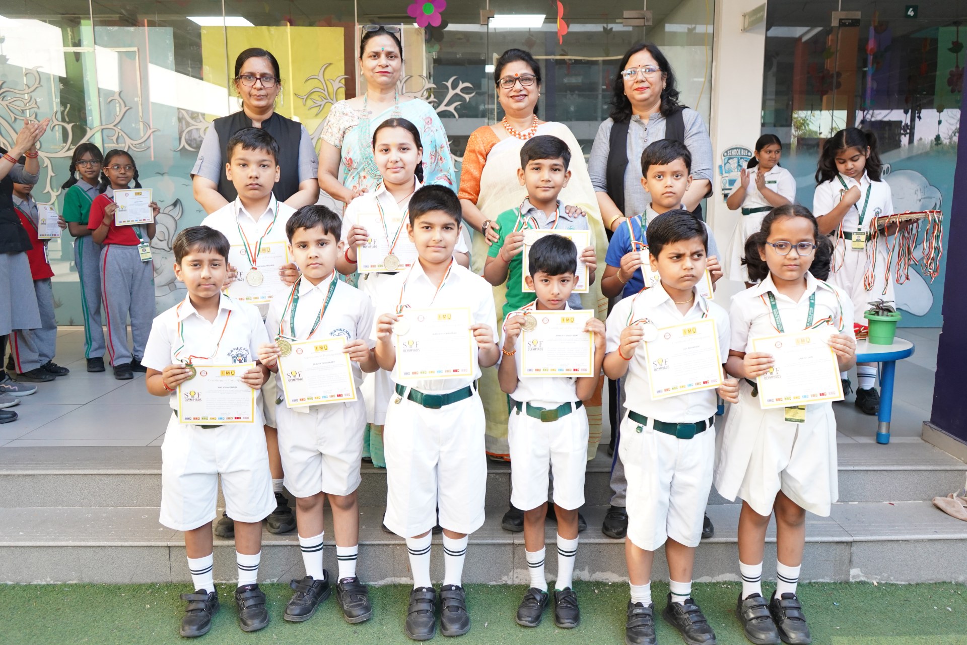 Today, the Primary Wing felicitated these bright achievers for their exceptional performance at the international level. The students were congratulated and blessed by Chairman Mr. Surjit Singh Grover and Vice Chairman Mr. Harman Grover, who appreciated their dedication and excellence.