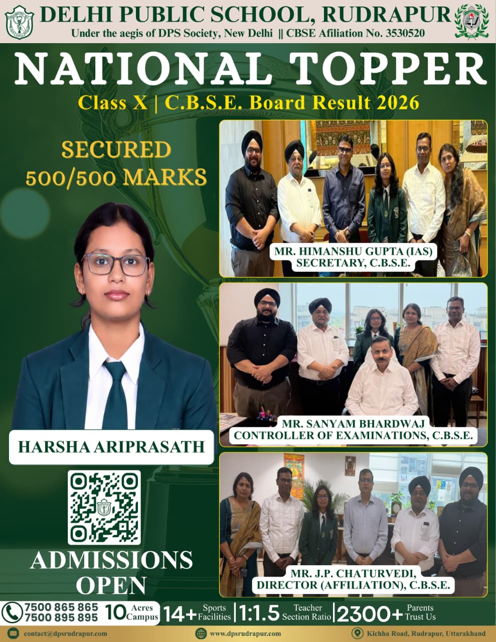Join us in congratulating Harsha, our CBSE National Topper, and the entire DPS family on this historic victory.
