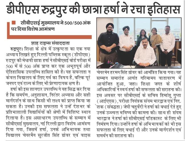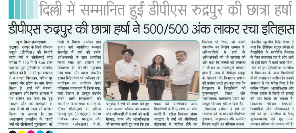 This prestigious media recognition stands as a testament to her hard work, discipline, and commitment to excellence, nurtured at DPS Rudrapur. It is truly a moment of pride for the entire school community.